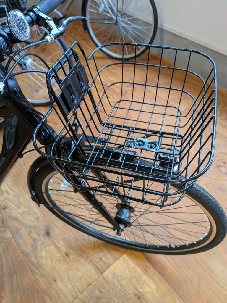 二つ目は、カゴや泥除けにスタンド、さらには鍵もしっかりついているところです。