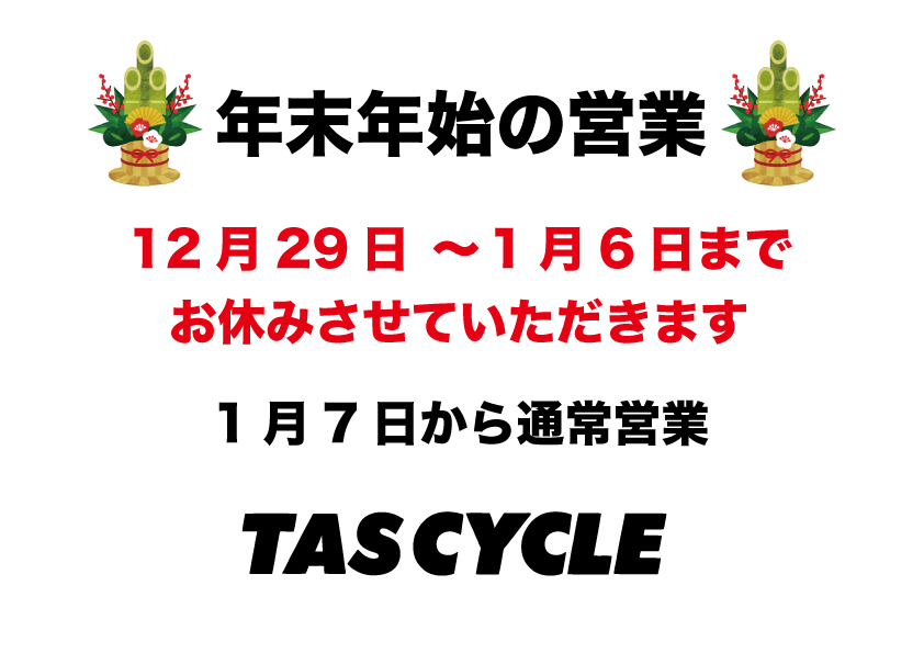TAS CYCLE 学園の森店の営業開始は1月5日からになります。